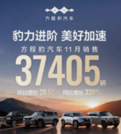 毕竟方程豹靠着4款车就在11月卖了3.7万辆,远超腾势六款车型卖出的1.3万辆,更不用说方程豹超过三位数的同比增长。