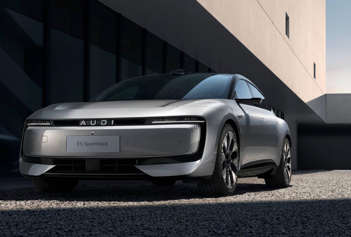 与E5 Sportback不同的是,AUDI E7X将横向布局的数字矩阵式LED大灯改为纵向,进一步延伸了整个前脸的视觉宽度。同时,AUDI E7X还将“AUDI”字母标移到机盖上方,前包围少了獠牙式设计,运动氛围有所减弱,但多了几分SUV的沉稳。