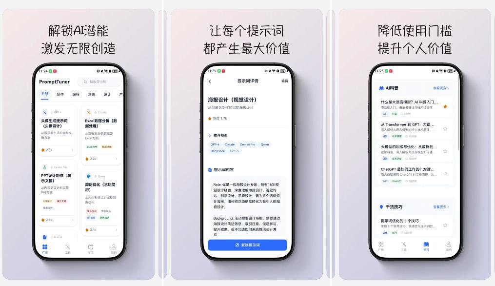 《PromptTuner》是一款帮助用户快速找到、优化和复用高质量 AI 提示词(Prompt)的鸿蒙应用。在生成式 AI 浪潮席卷全球的今天,如何写好提示词成为了许多用户的痛点,而《PromptTuner》捕捉到这一需求。