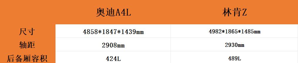 两车虽然定位都是中型轿车,但尺寸上还是有着明显的差别,奥迪A4L的长宽高分别是4858*1847*1439mm,轴距是2908mm,而林肯Z的尺寸达到了4982*1865*1485mm,轴距是2930mm。