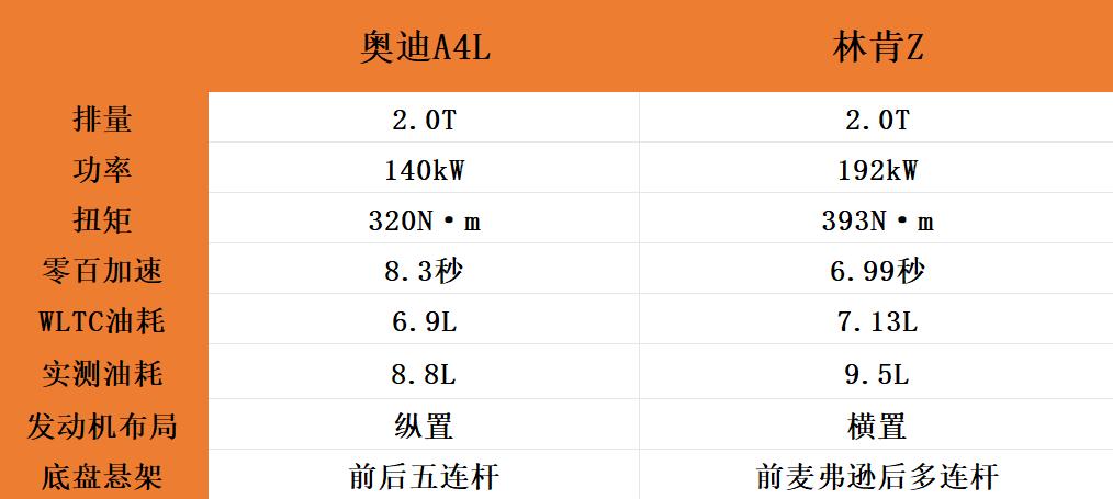 所以,回到两台车之间如何选择的问题,如果你对品牌比较在意,并且想要更好的操控体验以及更低的油耗表现,可以选择奥迪A4L。而要是你对性价比和动力有追求,并且追求更佳的质感,那么林肯Z大概率能够满足需求。