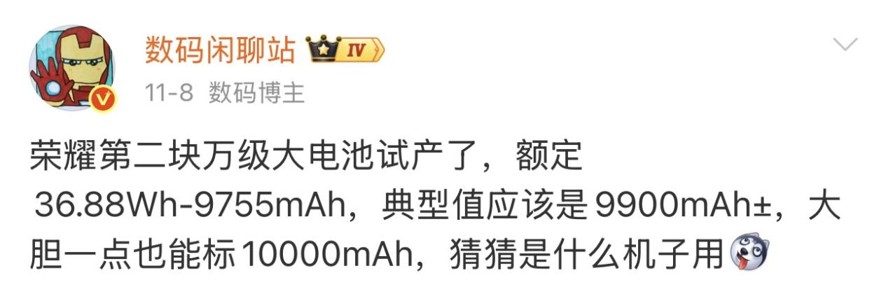 据博主爆料,荣耀WIN系列的电池容量或将达9000+mAh,最高甚至可能达到10000mAh,无论对比上一代GT系列产品还是市面上的同类游戏手机,都拥有巨大的续航优势。