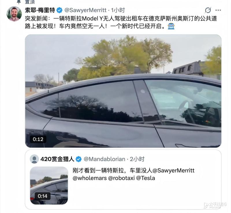 有博主在同一城市不同时间段内,发现多台完全无人状态下运行的Robotaxi。这表明测试并非单一车辆的孤立验证,而是具备一定规模和连续性的系统化测试。