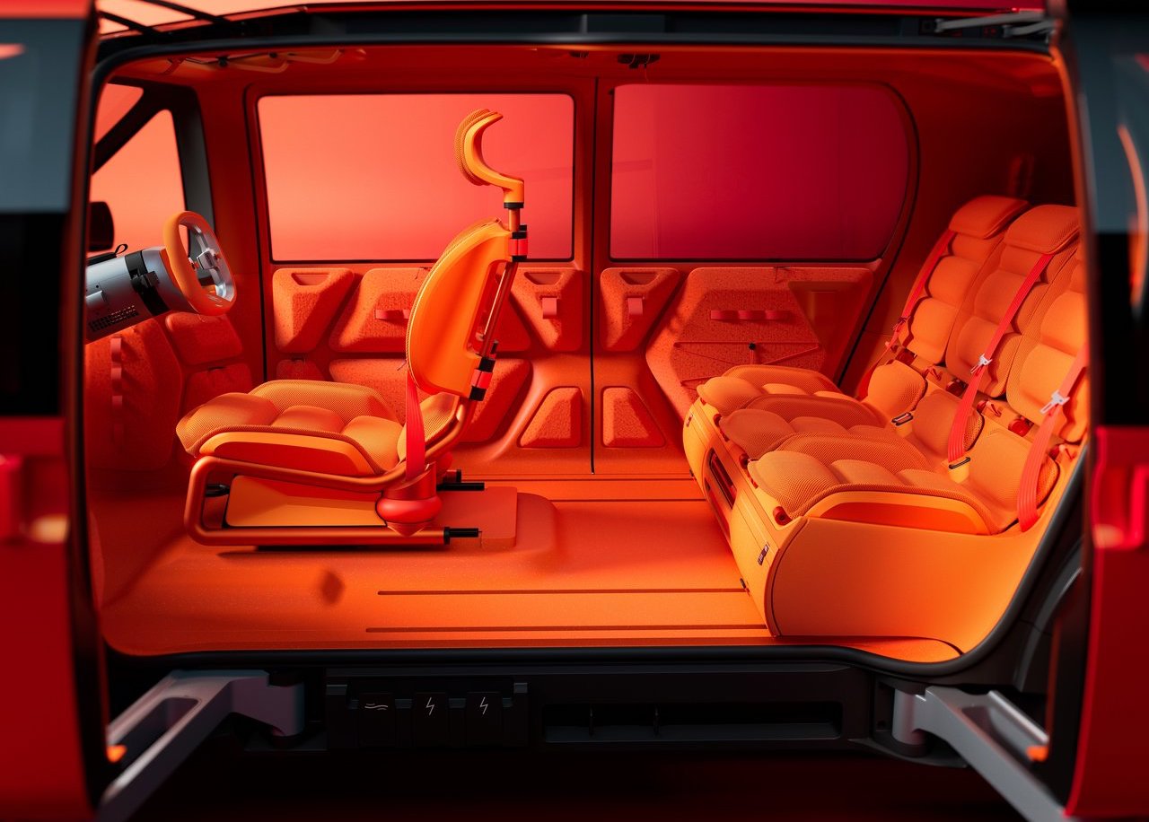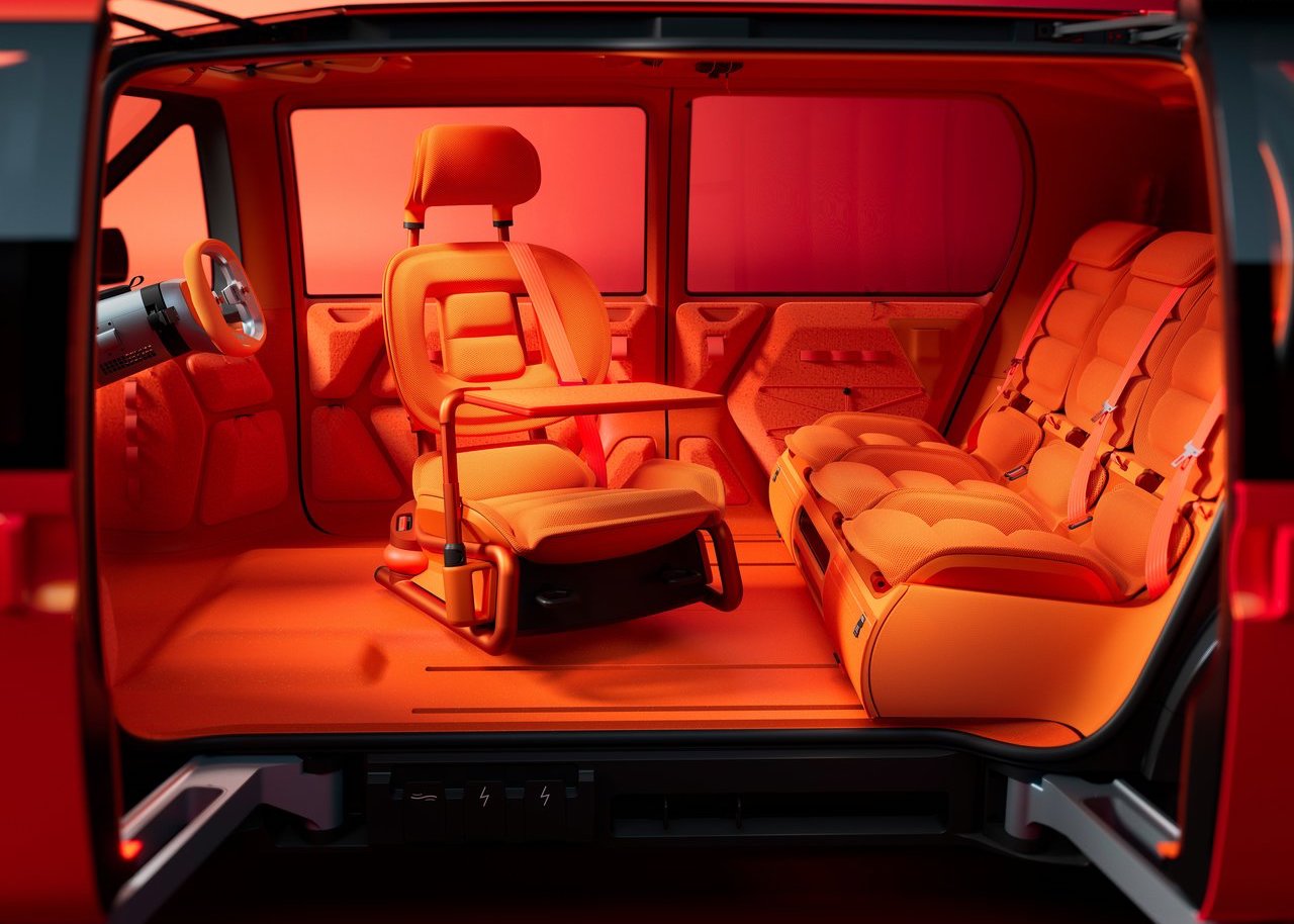 设计团队还向品牌历史致敬,采用3D织物打印技术,重新演绎了经典的单辐式方向盘。座舱内壁的储物格采用立体设计,灵感源自运动服饰的储物结构;座椅的发泡填充物上印有品牌标志性的“巧克力方块”图案,在保障极致灵活性的同时,也彰显了品牌的经典传承。