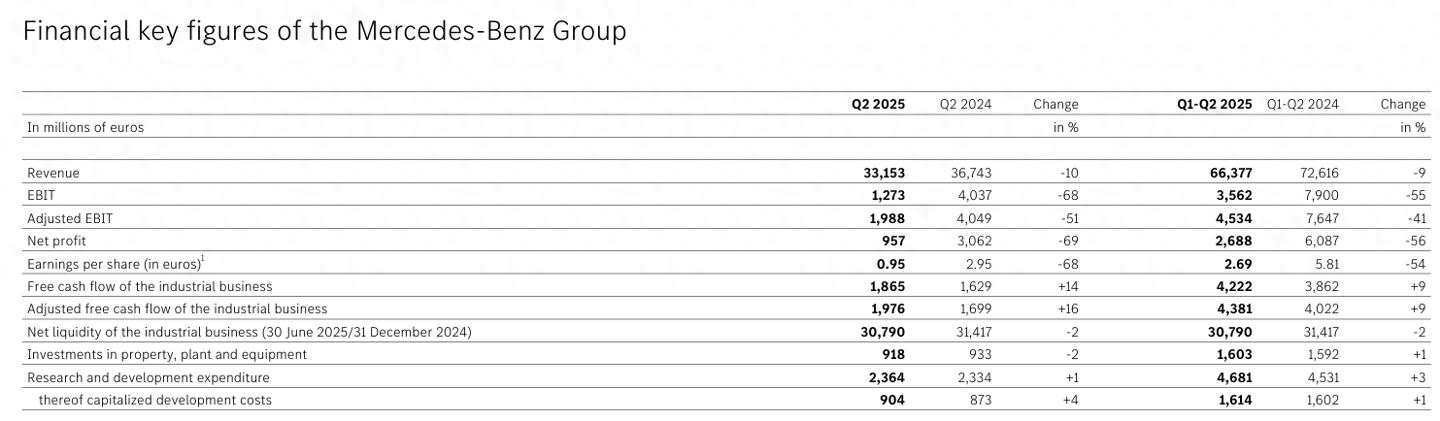 7 月 30 日消息,梅赛德斯-奔驰集团当地时间 7 月 29 日公布了 2025 年第二季度报告,受关税和宏观环境的影响:
