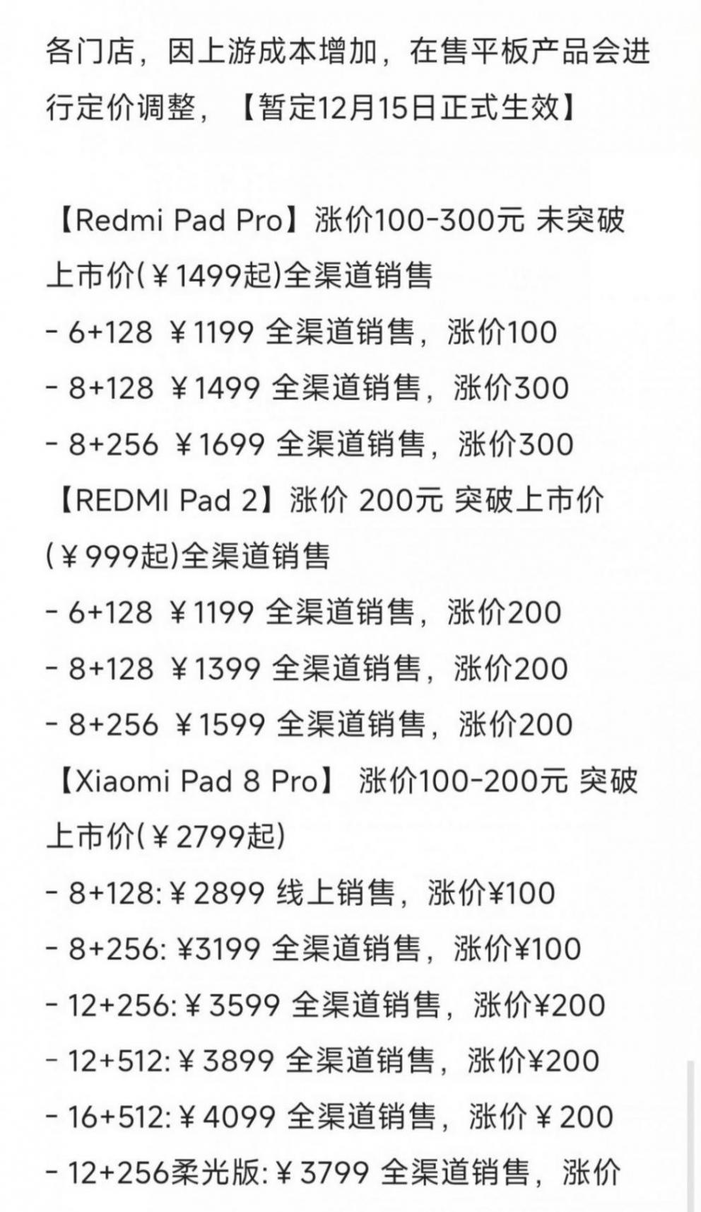 至于原因,大家其实应该也有听说,那就是内存涨价,幅度堪称“离谱”。就拿电脑内存来说,此前32GB的电脑内存才卖300多元,现在直接涨到1000多元,翻了两三倍,说它比黄金还保值都不为过。小米之家也已经宣布,多款已发布的小米平板都要涨价100-300元,可见确实是形势很严峻。