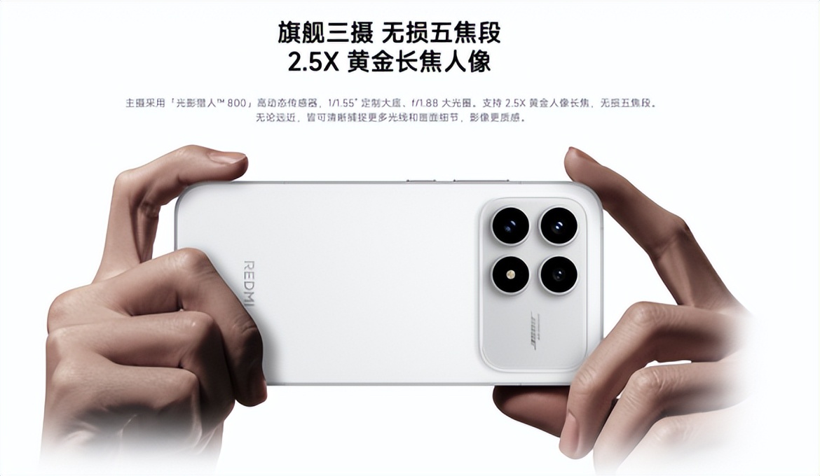 Pro Max直接堆出红米史上最强影像!主摄升级成5000万像素光影猎人950大底传感器(1/1.31英寸,13.5EV动态范围),进光量暴增,夜景拍出来又亮又清晰,细节拉满;超广角也升到5000万像素,拍大场景不畸变、画质好;最绝的是加了5000万像素潜望式长焦,5倍光学变焦+10倍无损变焦,远处的风景、人物细节都能拍得清清楚楚,堪比小相机!前置也升级到3200万像素,自拍更细腻,美颜自然不假脸。还支持8K视频拍摄和各种专业模式,摄影爱好者、喜欢拍vlog的宝子,选它准没错!