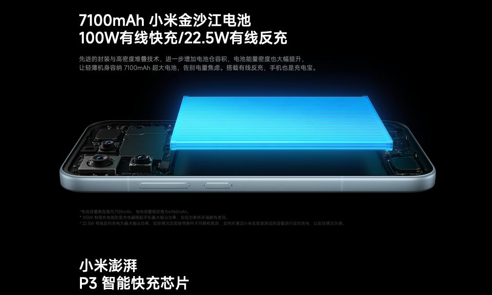 红米K90内置7100mAh大电池,搭配澎湃G2+P3芯片,续航超顶!重度使用一整天完全没问题,再也不用到处找插座。支持100W有线快充,实测30分钟左右就能充满,应急补电超方便,还能22.5W有线反充,给耳机、手表充电应急也ok。