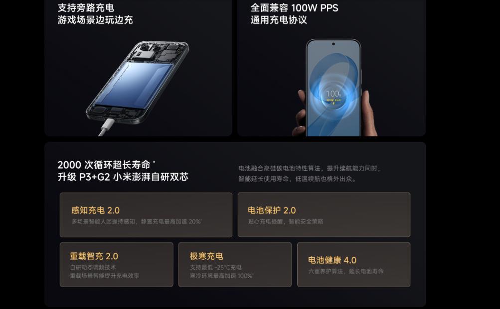 Pro Max更狠,直接上7560mAh超大电池,续航再上一个台阶!100W有线快充保留,还新增了50W无线快充,随手往无线充电器上一放就能充,不用插拔数据线,床头、办公桌放一个,补电超便捷。俩机型都兼容100W PPS快充协议,随便找个快充头就能用,通用性拉满。