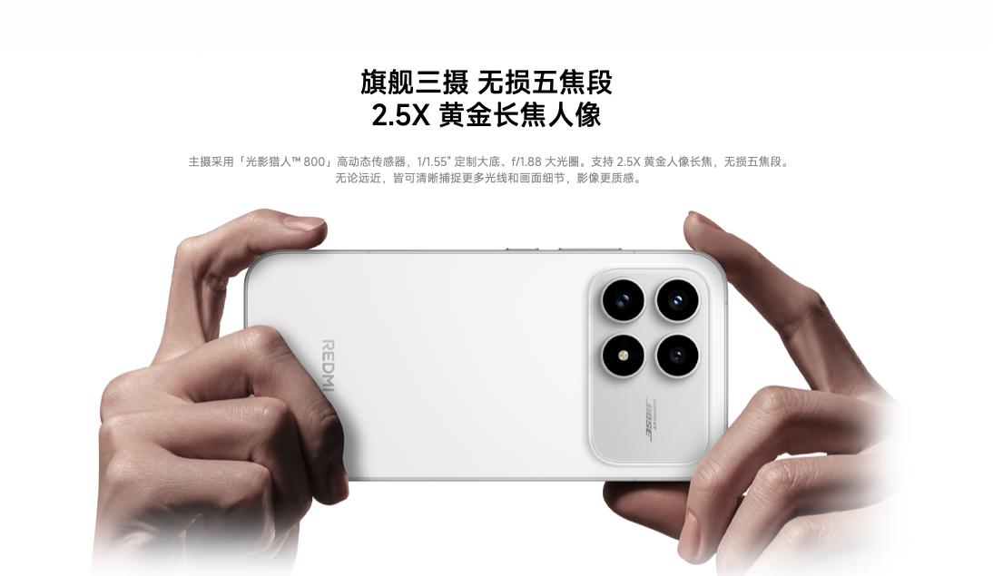 红米K90则主打“全焦段实用”,后置5000万像素高动态主摄+5000万像素2.5倍光学变焦长焦,15mm到120mm的五个常用焦段都覆盖到了。2.5倍长焦拍人像特写、演唱会远景超给力,配合AI色彩校准,还原出来的颜色很真实,逆光拍人也能压住高光、提亮脸,肤色看着很自然。不过主摄像素只有荣耀500的四分之一,细节解析力稍微弱一点。