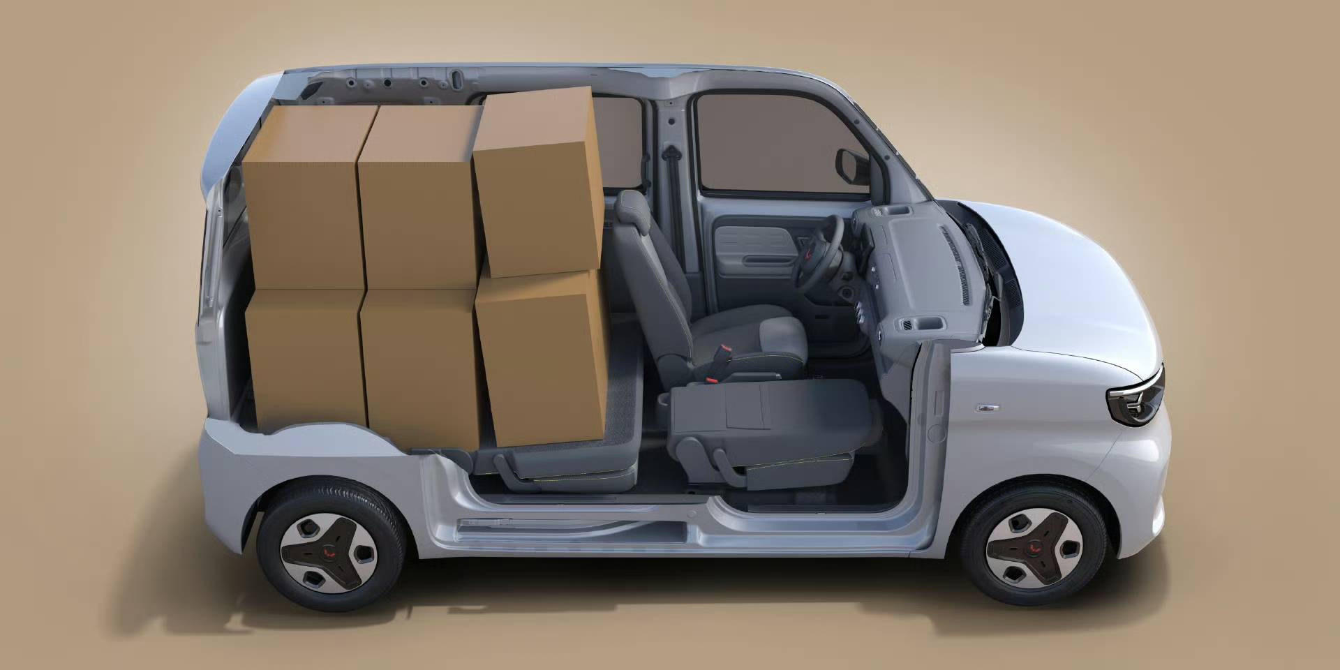 首先外观没有任何改动,依然是“K-car”风格设计,车身尺寸依旧保持3685/1530/1765mm,轴距2600mm。不过外部配置上有一定升级,大灯从卤素大灯升级为LED灯组,此外加入了倒车影像。内饰依旧是硬塑料材质为主,不过在舒适性和实用性配置方面有所升级,如主副驾安全气囊、7英寸液晶仪表、主驾座椅六向调节等。