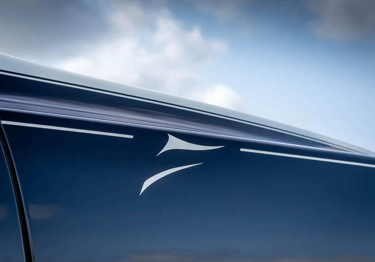 车内后排则采用了深蓝色皮革,配有腮红粉色的缝线和装饰,为车主提供更具沉浸感的氛围。前后车厢的头顶内饰与车内的色调完美契合,丝绸之魂图案以柔和的腮红粉色光芒呈现,搭配白色流星。