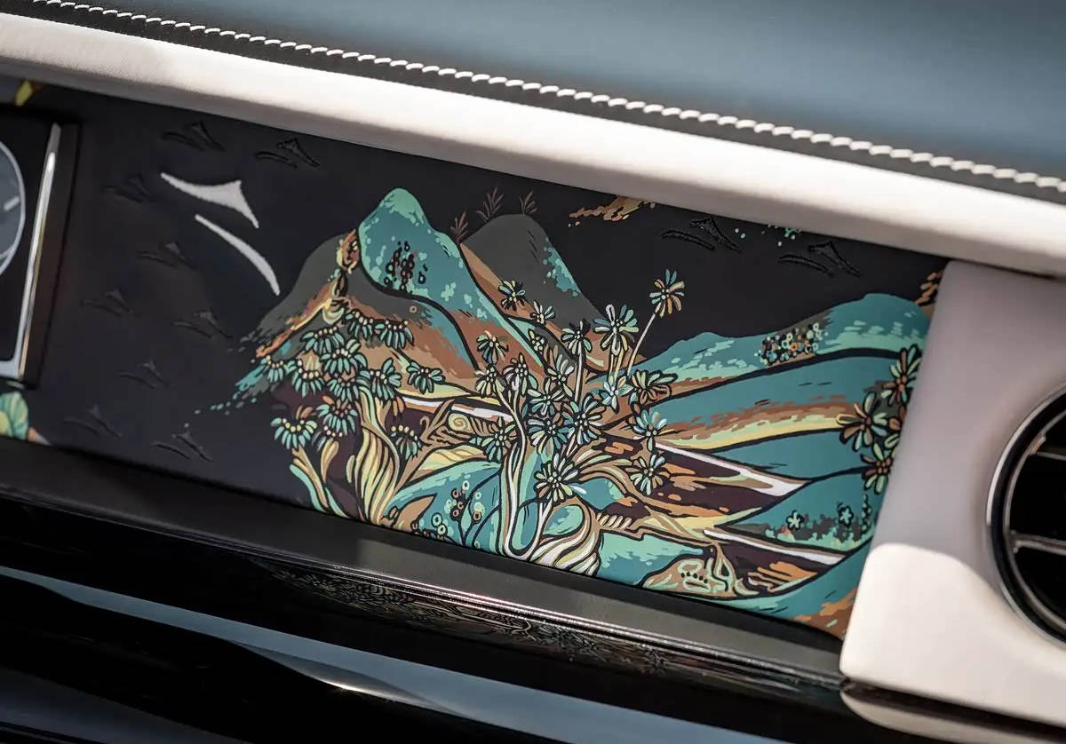 一千多年前,敦煌地区的艺术家和工匠在位于戈壁沙漠边缘的山中雕刻并绘制了一系列神圣的洞窟墙壁。这些洞窟藏有世界上最伟大的壁画艺术之一,因其独特的地理位置,成为古代丝绸之路文化交汇的中心。今天,劳斯莱斯通过其定制团队献上这一现代致敬作品。
