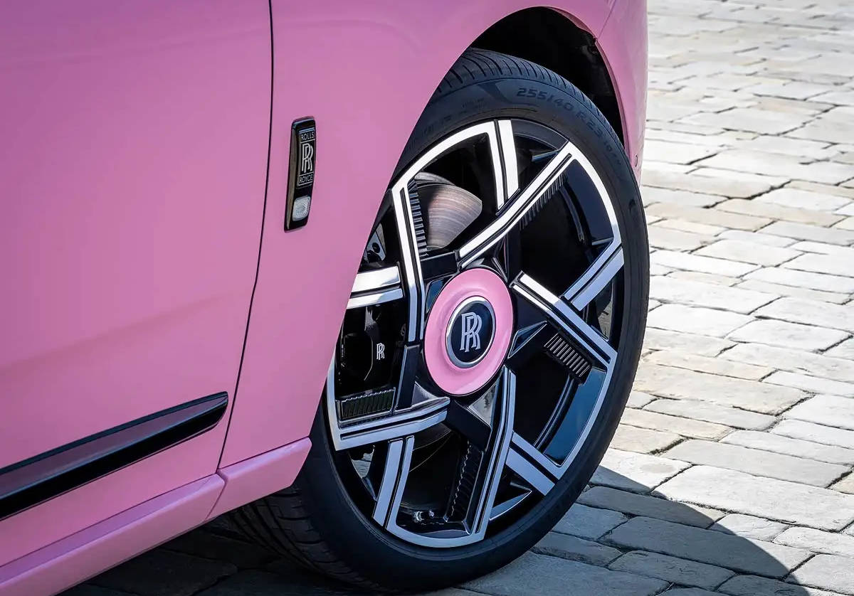 库里南Black Badge采用了“丹骞粉”色调,23英寸黑徽章锻造轮圈中心也使用了这一颜色。车身C柱和车线上的“丝绸之魂”图案呈现黑色。前排座椅采用“腮红粉”皮革,配以特殊打孔设计,灵感来源于劳斯莱斯总部古德伍德上空的云朵变幻。