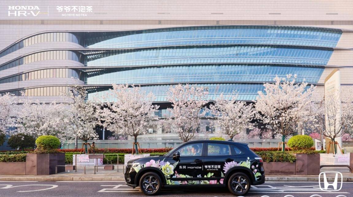 驾驶着一辆披着繁花外衣的HR-V穿梭于武汉街头,车身以春日繁花与爷爷不泡茶品牌元素设计,更成为流动的城市风景,途经网红打卡地与交通节点,让品牌曝光从静态走向动态,在移动中持续制造了话题热度。