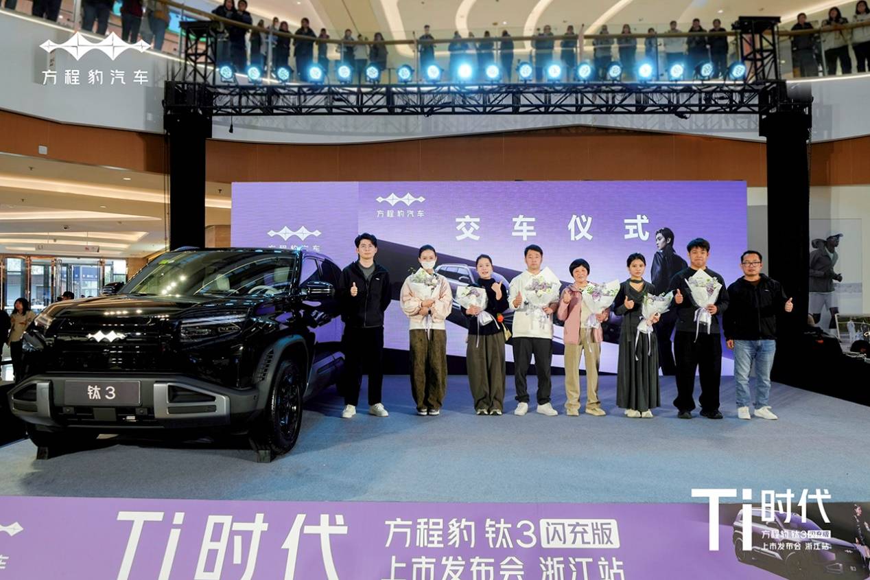 产品讲解环节结束后,本次活动还为杭州地区首批10位钛3闪充版车主,举办了隆重的集体交付盛典。方程豹品牌领导登台,为每一位交付车主献上定制交车鲜花,与现场所有嘉宾共同见证车主们的幸福时光。