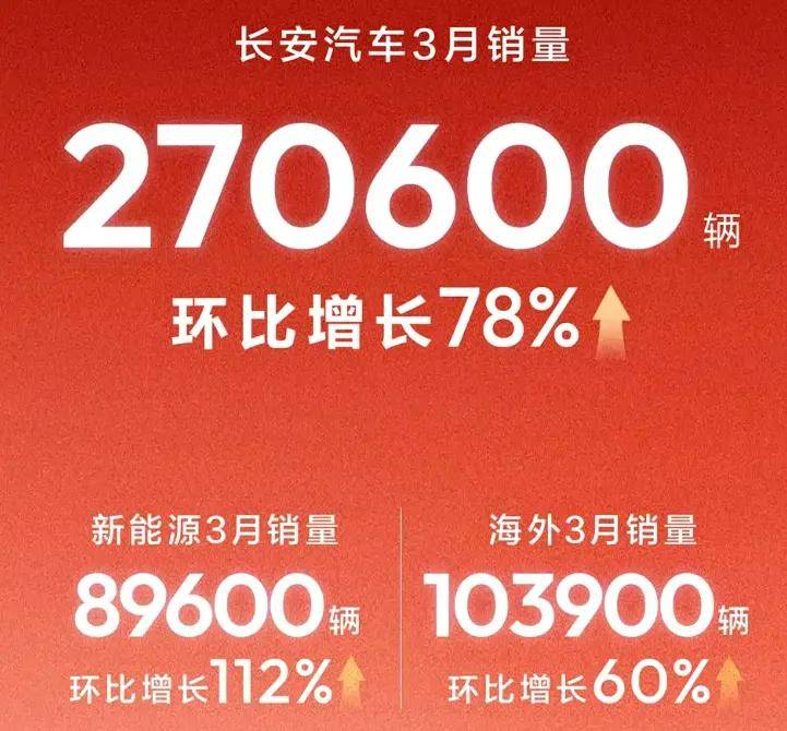 长安汽车在今年3月迎来环比增长78%的好成绩,单月销量达到270600辆。具体到各品牌,长安汽车以新能源与燃油车双线并进,长安引力序列3月销量高达103900辆,长安逸动、CS75系列月销量均2万辆。