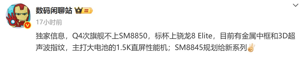 另据爆料,一加计划在今年Q4推出全新产品线,首发搭载高通最新SM8845平台。该芯片基于台积电第三代3nm工艺(N3P)、Oryon自研架构,并采用2+6全大核设计,定位“次旗舰”,旨在平衡性能与成本。与以往中端机型沿用旧旗舰芯片不同,高通此次通过SM8845开辟独立次旗舰序列,展现出面向中高端市场结构性重塑的策略新意。