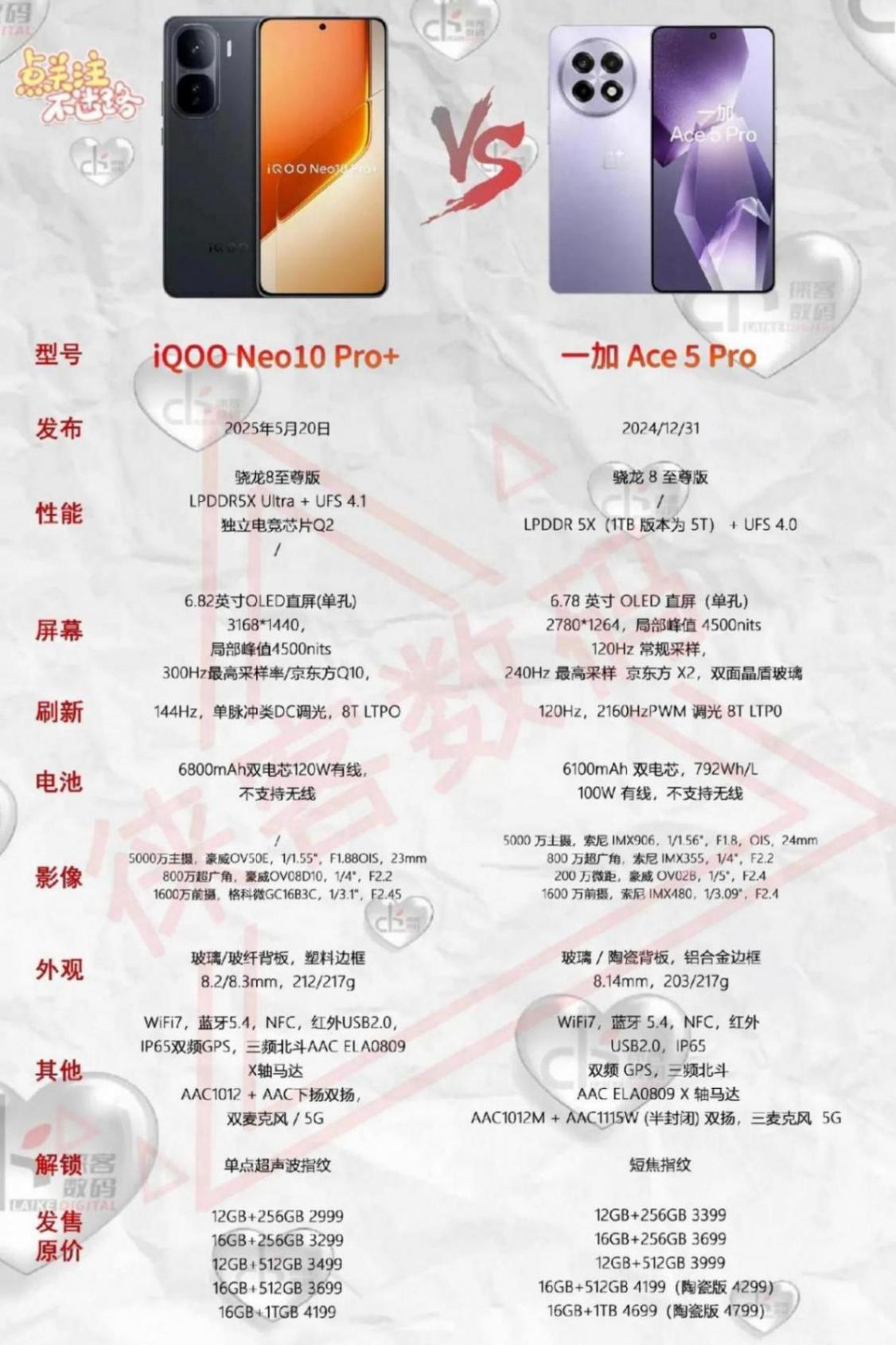 配置 一加Ace5至尊版 iQOO Neo10 Pro+