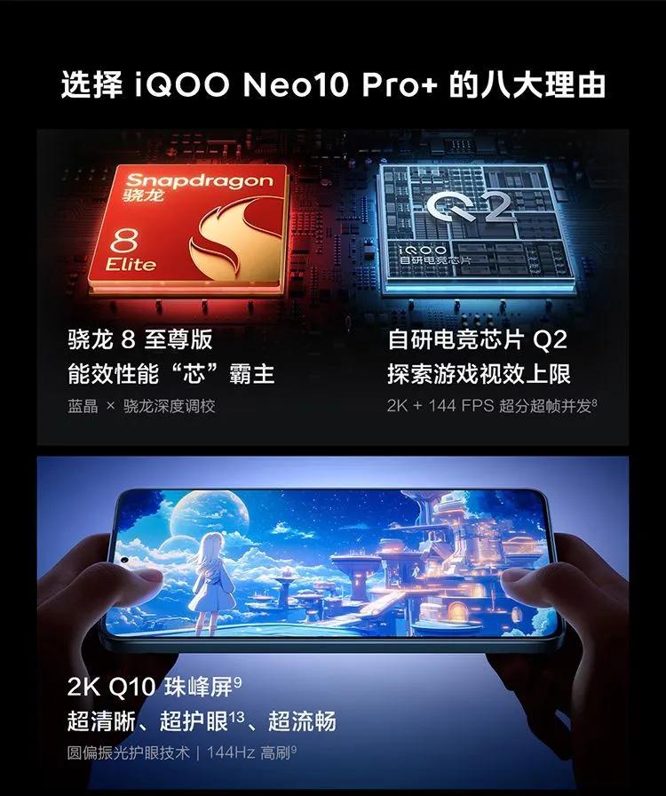 - iQOO Neo10 Pro+:骁龙8至尊版+LPDDR5X Ultra+UFS 4.1,原神须弥跑图平均帧率60.2帧,1% Low帧56.8帧(几乎无卡顿),自研芯片Q2支持1.5K+144FPS超分超帧;